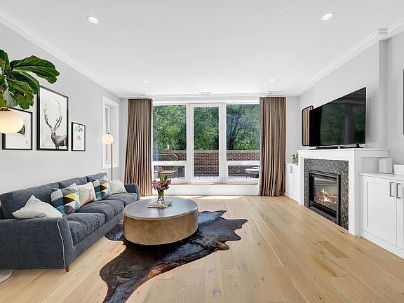 This luxurious and meticulously finished 3-bedroom, 2.5-bathroom duplex up penthouse offers an unparalleled living experience, complete with four outdoor spaces, each featuring high-end Trex decking. Among these is a serene rooftop deck that includes a hot tub and sauna, perfect for unwinding while enjoying breathtaking views. Inside, the open-concept layout is accentuated by wide white oak flooring and abundant natural light streaming through north and south exposures. The chef's kitchen is a culinary dream, outfitted with premium Thermador appliances-including a stove, dishwasher, refrigerator, wine fridge, and microwave-alongside custom cabinetry that extends to the ceiling and a striking quartz waterfall island. A cozy breakfast nook and a rear deck, ideal for grilling, complete this inviting space. The main level boasts a spacious living and dining area anchored by a wet bar, fireplace, and a large deck that seamlessly extends the indoor living experience outdoors. A stylish half-bathroom completes this floor. Upstairs, the primary suite is a true retreat, featuring floor-to-ceiling windows, dual walk-in closets, and a spa-inspired ensuite bathroom with walnut floating vanities, a soaking tub, heated floors, and a separate shower adorned with elegant white tile and gray veining. Two additional generously sized bedrooms share a well-appointed bathroom with a double vanity, soaking tub, and classic subway tile. A washer and dryer provide added convenience, and an additional outdoor deck is located on this level. The top floor is dedicated to relaxation and entertainment, featuring an outdoor grill, TV, hot tub, and sauna, creating the ultimate oasis with stunning downtown views. This home blends sophisticated design, modern amenities, and exceptional outdoor spaces to offer a lifestyle of unparalleled comfort and style.