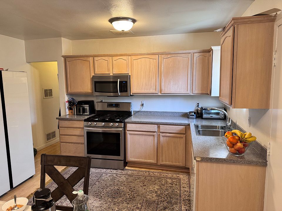 Remodeled 2 Bed, 1 bath home, Modern Kitchen and Bath, Landscaped, Large Rooms, hardwood flooring throughout, Corian Countertops, stainless stove/oven, microwave, dishwasher, disposal, etc. laundry hook-ups, Carport and Storage, Elementary and Middle Schools down the block , quiet neighborhood, Back house , Avail Oct 1, Security $2400, Call Amanda to see . May allow small quiet pet, (Rent includes water/sewer, trash and landscaping/gardening). Owner pays for water , trash ,and gardening! Renter pays gas and electricity.
