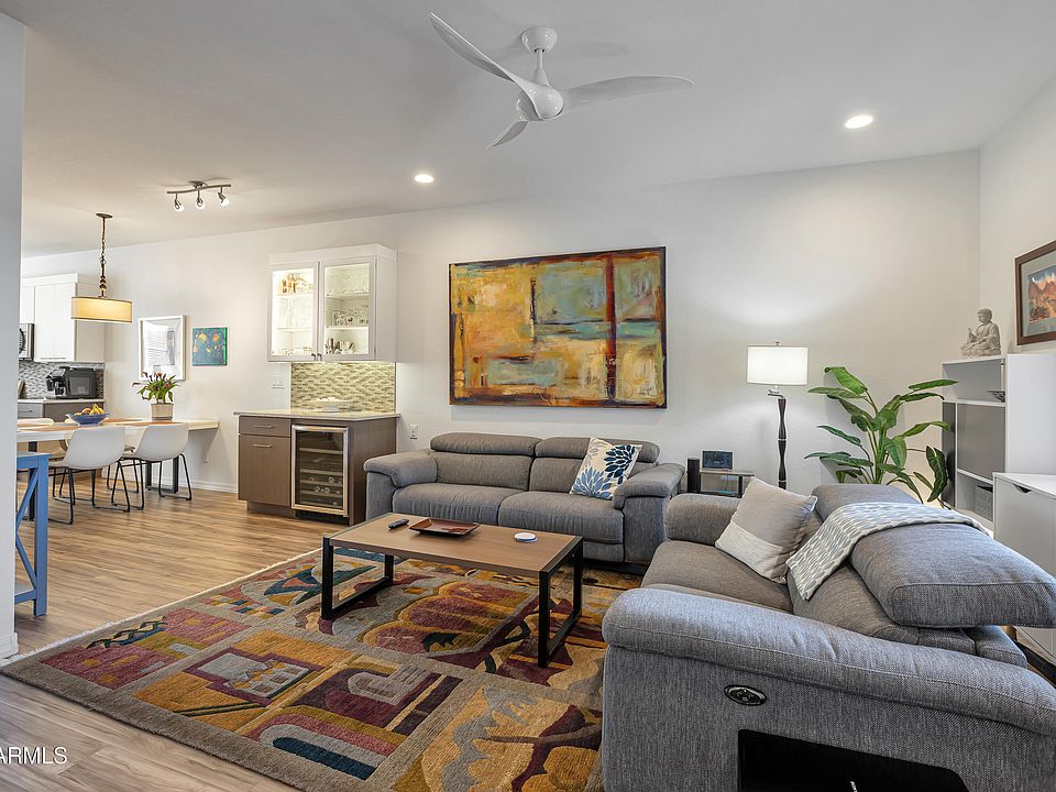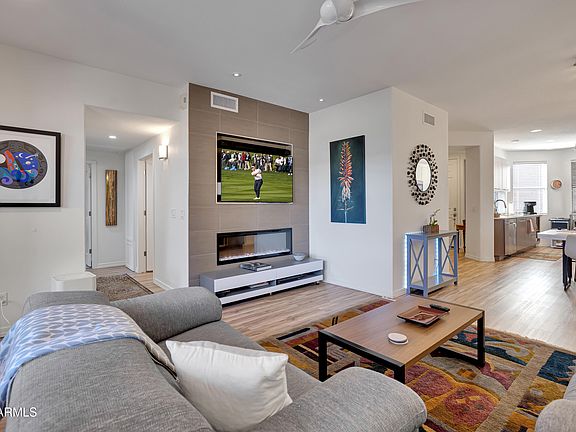 Step into modern comfort in this fully remodeled 3-bedroom, 2-bath home featuring a rare first-level, exterior-facing floor plan with a private courtyard. An open layout connects the kitchen, dining, and living areas—ideal for entertaining. The sleek kitchen highlights quartz countertops, stainless steel appliances, custom cabinets, and tile backsplash. Enjoy stylish finishes throughout, including two remodeled baths, spacious bedrooms, a new AC system, and a mood-setting electric fireplace. Xeriscape landscaping enhances both front and back courtyards, including automatic drip systems. This beautifully remodeled home is move-in ready or investor-ready for a turnkey opportunity! Do not wait to enjoy this warm and sophisticated one-of-a-kind home in Kierland Greens—truly a show stopper!