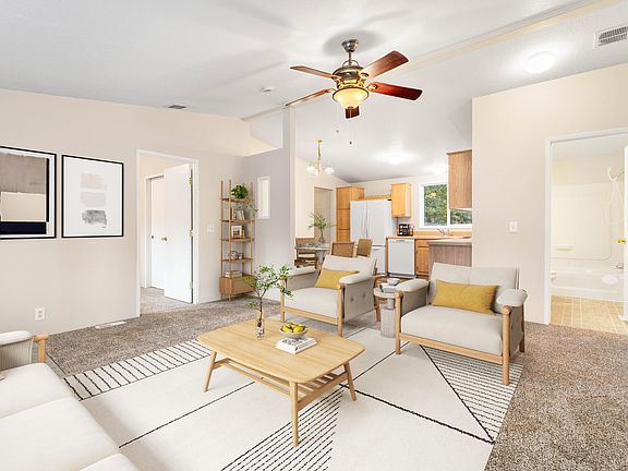 - Ceiling Fan(s), Laminate Counters, Open Floorplan, Primary Downstairs, Shower/Tub Combo, Tile Counters, Vaulted Ceiling(s)
