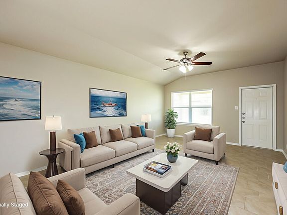 Take a look at this single-story renovated San Antonio rental home with four bedrooms and two full bathrooms. A long foyer with hard-surface flooring offers access to the secondary bedroom and leads into the kitchen. The kitchen's island, with a stone-look countertop, offers convenience. An overhead fan promotes comfort in the living room, where neutral paint creates a calm palette for your decorative touches. The dining room includes a modern light fixture. Rest well thanks to the main bedroom's ceiling fan and twin large windows. The en suite bathroom's garden tub promotes a relaxing end to each day. Begin your mornings at the twin-sink vanity. A covered patio and fenced backyard encourage outdoor fun.