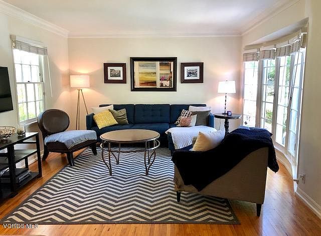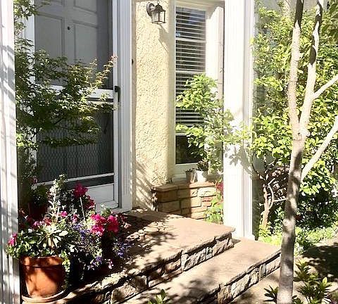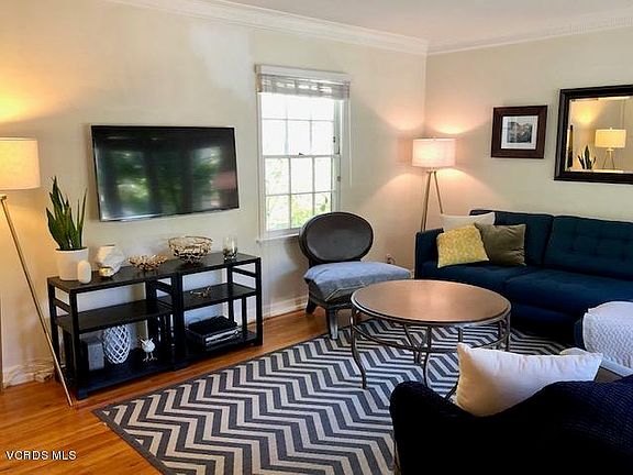 Beautifully upgraded 2BR/1BA ground floor condo in prime south of Ventura Blvd location. Private entry w/a garden like setting opens to the living room. Enjoy picturesque views from the large pane windows, original to the home. The open floorplan includes a formal dining room w/chair rail molding & updated lighting. The kitchen was remodeled w/newer shaker style cabinetry, glass tile backsplash, & has a walk-in pantry. The master bedroom looks out to the garden & pool area & has his-&-her closets. Remodeled bathroom with marble floors, newer toilet, vanity, sink & fixtures. Many original features have been well maintained such as the wood flooring, crown & base moldings, interior doors, & even the built-in bookshelf in the hallway reading nook. Additional features include air conditioning, upgraded lighting, newer water heater (2018), wired for alarm, & plenty of storage. The back door from the kitchen allows direct access to the private single car garage with room for storage. Enjoy the immaculately maintained grounds with colorful, lush landscaping and the private, courtyard pool with patio seating. Excellent location in the building with views from almost every window! Just across from the Galleria and near restaurants & shopping.
