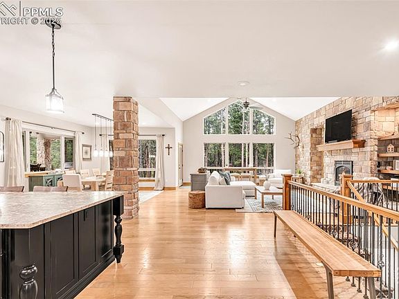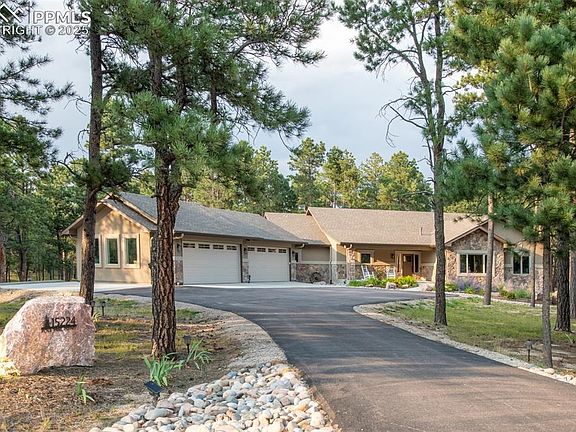 Enveloped by towering pines in the exclusive Black Forest Reserve, this residence offers a timeless sanctuary where privacy, serenity, and craftsmanship converge. Set on 3.12 acres that feel like ten, this property borders protected HOA easement land, ensuring no future development will interrupt the breathtaking forest views or the feel of complete privacy. Inside, a soaring open-concept living area is framed by 14-foot windows, vaulted ceilings, and a striking stone fireplace with custom alder details. A chef’s kitchen inspires with dual ovens, a 6-burner gas range, an oversized island, and a walk-in pantry. Solid alder finishes are showcased throughout, from doors and cabinets to shutters and trim. Upgrades include a new Class 4 impact-resistant roof, a Generac whole-home generator, Smart Power Vented Attic Fan, a full security/video system, and a fully insulated, 75,000 BTU-heated 4-car garage. Outdoors, custom perennial gardens with drip irrigation complement the surrounding forest greenscapes. The Black Forest Reserve offers gated access for security and exclusivity, while still embracing the openness of expansive acreage lots. Here, you’ll enjoy both privacy and a true sense of community. This home perfectly captures the refined lifestyle that makes living in The Black Forest Reserve so special.
