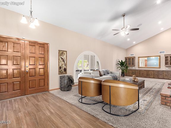 Amazing Moon Valley location! Well-cared for 3 Bedroom/3 Bath tucked in a cul-de-sac. HUGE BONUS ROOM could be craft room, storage or workshop! Enter into formal living room with double-sided fireplace, vaulted ceilings. Family room leading to updated kitchen. Formal dining room. Primary bedroom with French doors. 2 spacious secondary bedrooms, one with office built-ins. E-facing patio with view fencing. Beautiful HOA-maintained grounds with community pools. Solar Lease has been PAID forward! No neighbors behind! Walking distance to Moon Valley Park, convenient to shopping, freeways, schools and more!