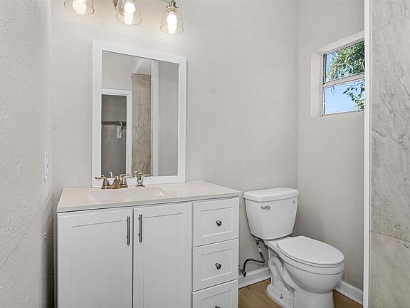 Welcome to this charming two-story-style home featuring 3 bedrooms and 2.5 baths with a one-car garage. As you walk in, you’re greeted by an open living and dining area that share a bright, welcoming space. To the left, stairs lead to the upstairs bedroom that includes its own private bath with a shower, perfect for added privacy. Downstairs, the kitchen offers plenty of counter and cabinet space, ideal for anyone who loves to cook or entertain. Two bedrooms are located on the main level one featuring a convenient ensuite half bath, along with a separate full bath for guests or family. Step outside through the sliding doors in the living area and enjoy a spacious backyard, great for gatherings, pets, or relaxing outdoors.