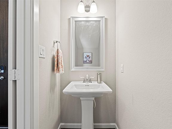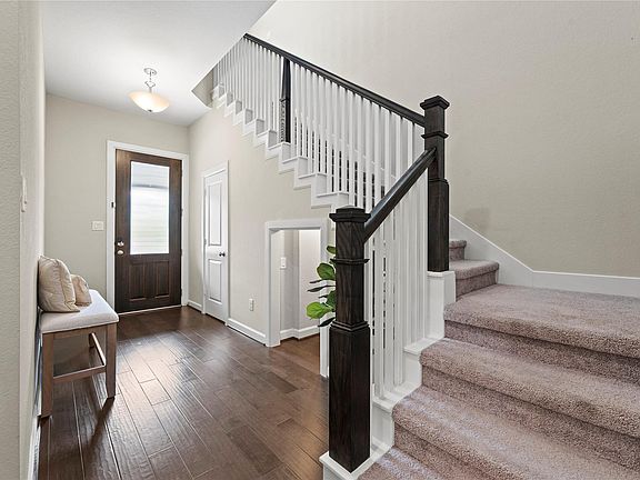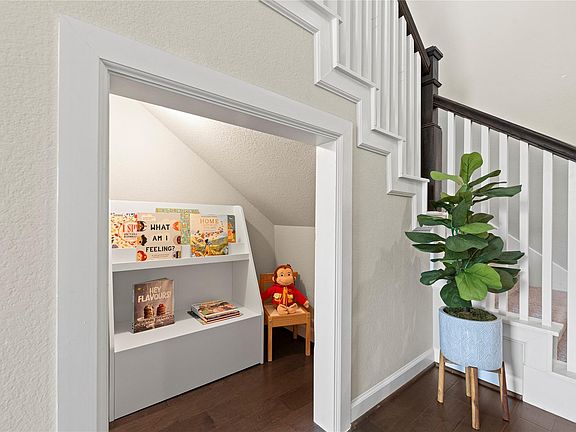 Beautifully designed David Weekley home featuring 3 bedrooms, 2.5 baths, a private office with glass doors, and an upstairs gameroom. The home features a whole-house water filtration and conditioning system, with a 6-stage alkaline drinking setup! Enjoy open-concept living with wood floors, tall ceilings, and abundant natural light. The spacious kitchen boasts a huge island, granite countertops, stainless steel appliances, and plenty of storage throughout the entire home. Unique custom nook under the stairs—perfect for pets, storage, or a children's play nook. The luxurious primary suite is spacious and boasts dual sinks, an oversized soaking tub, a stand-alone shower, and a large walk-in closet. No back neighbors for added privacy. Zoned to acclaimed Cy-Fair ISD schools in the master planned community of Bridgeland.