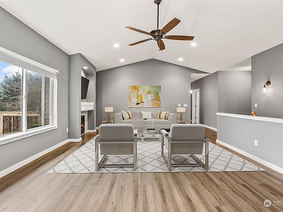 This is a perfect blend of updates and privacy! Welcome to this beautifully remodeled 5-bedroom, 3-bathroom home perched on a spacious lot with breathtaking valley views! Located in the serene and sought-after community of Orting, this property offers both comfort and versatility, featuring a thoughtfully designed lower level that can be easily converted into a full separate living unit—perfect for guests, or additional rental income.The main level boasts an open-concept layout with stylish finishes, a modern kitchen with updated appliances, and abundant natural light through large windows framing picturesque valley vistas. Upstairs, you’ll find spacious bedrooms, including a primary bedroom with an en-suite bathroom.