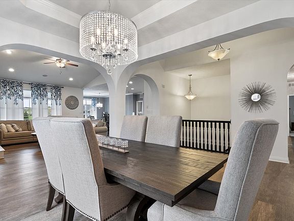 Prev model home Custom design choices throughout. 4-bed+office luxury ranch with a fully finished daylight basement & backyard oasis featuring covered patio, heated, saltwater pool with sun ledge. Modern gas fireplace + stamped concrete patio. Impressive Dining Rm w/Gorgeous tray Clgs! Irresistible Great Rm + Built-in Bkshelves + Gas Frplc opens to Gourmet Kit w/Dbl Ovens, Gas Cooktop, Granite Counters! Spa-Like primary Suite on the main, features tray ceilings, a large walk-in closet. Two additional bedrooms and full bath on main level. Basement boasts natural light, full wet bar, living area, rec area, bedroom with walk-closet, full bath + storage. Golf cart community, 2 clubhouses, 2 pools, tennis/pickle/bball courts +walking trails.