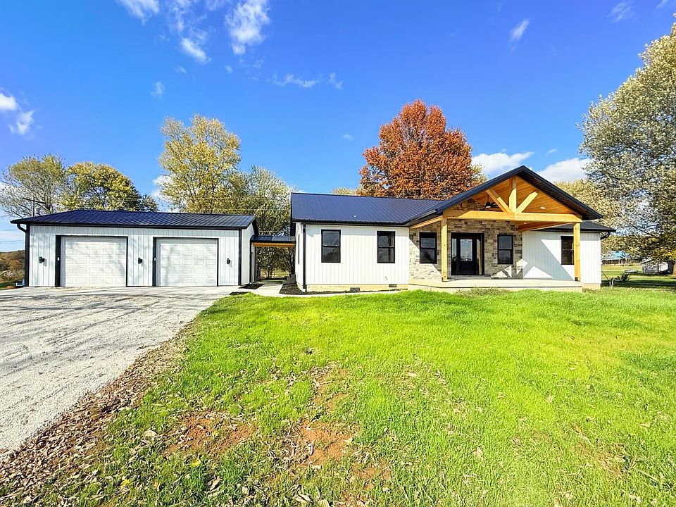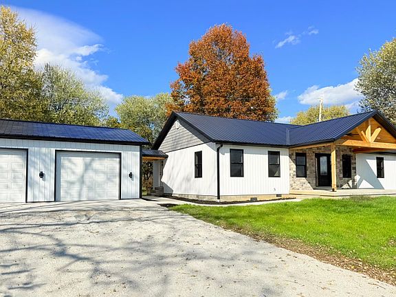 A Brand New Home, Fresh  & Clean ALL On One Level! Attractive blend of craftsmanship and comfort in this beautifully built 3-bed, 2-bath home. The spacious primary suite features a tiled walk-in shower, tile flooring & a large walk-in closet. You'll love the bright, open kitchen with soft-close cabinetry, brand-new appliances, ample storage & gleaming granite + quartz countertops. Enjoy the outdoors from the attractive covered front and rear porches. There's a 24x32 oversized 2-car garage connected by a breezeway, wide sidewalks , a generator rec already installed! The Upgraded Pella windows throughout add quality and natural light throughout. Great floor plan with separated primary suite, wide door openings, large bathrooms, tons of kitchen storage and counter receptacles! Really great new build ready to give you possession on closing day! Located less than a mile from Belterra Casino, just minutes to Vevay town amenities, and only 10 minutes to I-71. This one checks all the boxes!