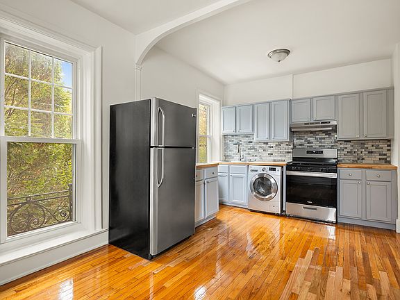 Just one block from Prospect Park, this bright corner apartment boasts NINE South and East-facing windows, a brand-new kitchen and bathroom, hardwood floors, and an in-unit washer and dryer. Located one flight up, the home offers an abundance of natural light and a flexible layout that suits a variety of needs.