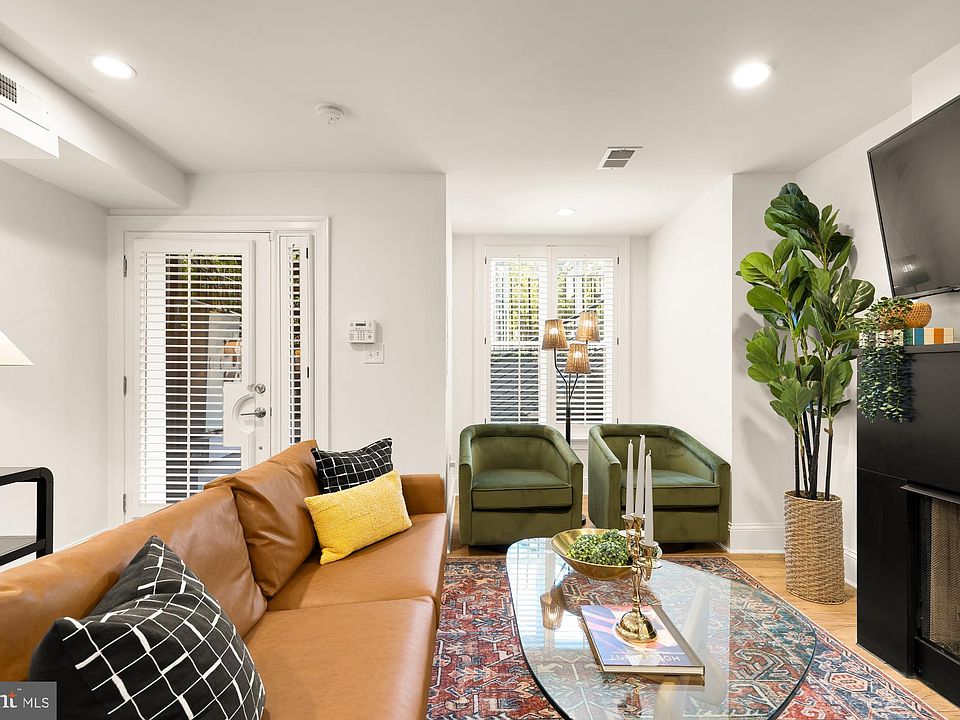 Welcome to this stylish 1-bedroom, 1-bathroom condo in the heart of Truxton Circle. This elegant home features dual exposure and abundant natural light throughout, complemented by an open-concept floor plan that combines modern finishes with inviting charm. The spacious living room includes a cozy bay window nook and a charming fireplace, creating the perfect spot to relax or entertain. The open concept kitchen boasts an eat-in island, stainless steel appliances, quartz countertops, a sleek backsplash, and abundant cabinetry for all your storage needs. The large bedroom features a walk-in closet with the in-unit washer and dryer for ultimate convenience. Step directly from the bedroom onto your private patio, ideal for morning coffee or quiet evenings outdoors. All of this comes with unbeatable walkability to the vibrant restaurants and bars of Bloomingdale, Truxton Circle, and Shaw, as well as Union Market, Union Station, multiple Metro stations, and nearby grocery options.