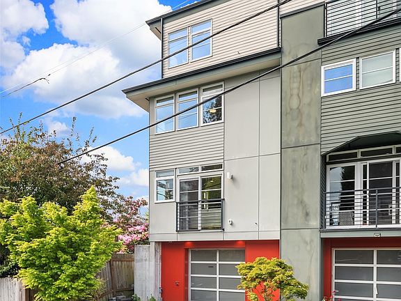 Welcome to your dream home in Olympic Manor! This stylish townhome offers 2 bedrooms + den/office w/ closet, attached, heated 420 SF garage (w/ room for a home gym!), & exterior storage unit - space is abundant! Enjoy water views of Puget Sound from the roof deck or relax in the bright, airy interior featuring high-end finishes like Bertazzoni appliances & hickory hardwood floors. This corner unit boasts balconies, tons of storage, & a serene ambiance. Located across from Sound View Park (pickleball, tennis, playgrounds & more!), it's in a prime spot with top-rated schools, transit, groceries, & amenities all within a few blocks. New carpet & paint throughout. No HOA or rental restrictions. Quiet, private, meticulously designed.