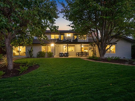 Beautifully updated and impressively spacious six bedroom 3,580 sq.ft. home plus office with additional 620 sq.ft. basement showcases timeless Monterey Colonial influences on a more than one-third-acre 15,876 sq.ft. lot in one of Sunnyvales most sought-after neighborhoods. Newly refreshed landscaping introduces the graceful two-level design, highlighted by its signature covered upstairs balcony and double-door entrance adorned with leaded glass. Inside, spotted gum hardwood floors, crown moldings, and soaring beamed ceilings define elegant yet comfortable living spaces designed for a variety of lifestyles. A spacious living room with cathedral ceiling and focal-point fireplace, along with a formal dining room, anchor the main level. The beautifully updated kitchen and casual dining area plus a spacious family room all open to the rear yard, where expansive outdoor space is ultra-private and bordered by Stevens Creek. A large covered patio, new lawn, fruit trees, and a greenhouse enhance the setting. A finished lower level adds versatile space for recreation, fitness, storage, and/or potential wine cellar use. Positioned near the Los Altos and Cupertino borders, this home offers an unbeatable Silicon Valley lifestyle with access to acclaimed Cupertino schools.