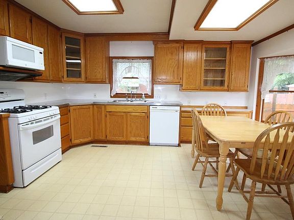 You need to see it to believe it! This home offers so much more than what you see when driving by. The home was remodeled by previous owners. Wiring and plumbing were replaced in 1994. The spacious kitchen has oak cabinetry & stainless steel counter tops. There is a bay window that brings in the view of the beautiful backyard. The range, refrigerator, dishwasher and microwave remain. All through the home are lots of built-in cabinets offering additional storage. The oversized living room has a bay window and built-in entertainment center. The master bedroom features built-in dressers and a platform bed. There is a rec room and full bath in the basement along with a 3rd bedroom. There are stairs leading outside from the basement. The heated garage is enormous. It was previously used as a workshop. Loft area. Storage room. Cedar siding was stained in 2014. Fenced backyard with storage shed, wood shed and play house. Lots more!