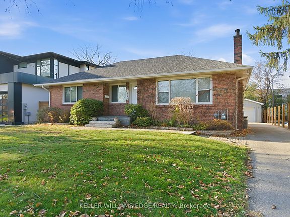This lovely brick bungalow offers a perfect blend of comfort and style. The entire home has been freshly painted, creating a bright and welcoming feel from the moment you walk in. The kitchen features a breakfast bar and pot lighting, while hardwood floors extend throughout the main level for a warm, cohesive look. The spacious living room includes a cozy fireplace and flows into a separate lounge area perfect for entertaining or relaxing. The main level offers 3 bedrooms and 1 bathroom, with an additional bedroom and bathroom with stand up shower located in the finished basement. Downstairs, you'll also find a wet bar area and brand-new carpet, making it an ideal space for guests or extended family. Outside, enjoy a small deck overlooking the yard, along with a separate garage for added convenience. Located in one of S.E. Oakville's most desirable pockets, you're close to top-rated schools, parks, shopping, and transit. A home that combines classic charm with fresh updates and functional living spaces.