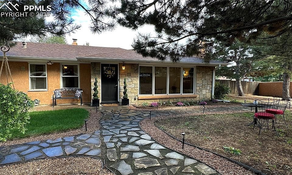 Welcome to this beautifully-updated Skyway home, offering main level living for multiple generations. This turn-key residence offers an exceptional blend of 1948 charm and quality with modern comforts and conveniences. You will enjoy thoughtful updates throughout, from the custom gourmet kitchen to luxurious touches like toasty bathroom floors and en suite laundry in the primary bedroom. Set on an extra-large and private lot with nearly as many features as the house.... automatically-watered raised garden beds, a expansive composite deck, relaxing spa, wandering pathways and gardens and plenty of room for your personal additions (fresh eggs anyone?). This rare combination of features provides comfort and flexibility like nothing else in 80906. Updates include high-end kitchen and bathroom remodels, electrical service, HE furnace, water heater, water supply line, composite deck.