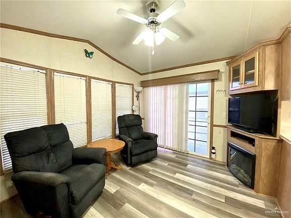 Don't miss this immaculate and thoughtfully designed residence sits on a desirable corner lot and offers a cozy, functional layout perfect for comfortable living. This 2014 park model features a bright front living room with large sliding doors for natural light, a built-in electric fireplace, and an eat-in dining area overlooking the efficient kitchen, a spacious 1 bedroom, 1 bathroom with a single vanity, step-in shower and double access. In 2022, a beautifully integrated addition added a second bedroom suite, complete with its own full bathroom, in-house laundry, closet space, and a mini split system for year-round comfort. The exterior features a full cover awning extending over the entire home and solar screens. This home has been updated with a newer HVAC system, water heater, and flooring, all completed in 2022. This is an excellent opportunity to enjoy low maintenance living in a well-kept home, in a community that offers peace, privacy, and a true sense of ownership.