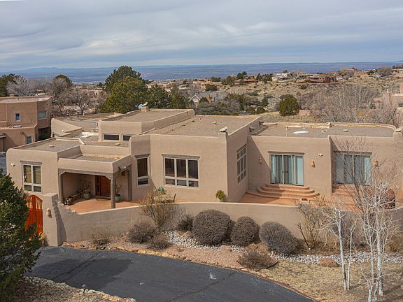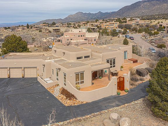 SANDIA HEIGHTS DREAM HOME! This gorgeous home is perfectly situated on .67 acres with stunning views of the Sandias everywhere! BRAND NEW TPO ROOF w new warranty! 20ft ceilings on the main floor with an airy and open floor plan that flows seamlessly from kitchen to dining and living areas. Oversized Primary bedroom on the main floor with picturesque views and 2 oversized closets w/ a bonus jacuzzi tub. The kitchen boasts beautiful Granite countertops and ample storage and upper end appliances. The large office has plenty of storage and light to work in comfortably. Enchanting 2nd story deck and the amazing views of both the Sandias and the west facing sunset over Mt. Taylor. The downstairs lair consists of a large sitting area with lots of natural light and access to the open backyard