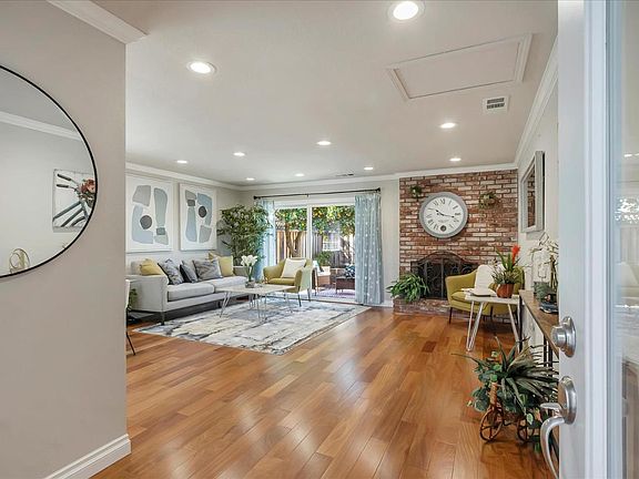 Unique HOA only two unit Condo, with no HOA Fees. Bright, Spacious Layout with Upgraded. Move in ready. 3 Bedrooms and 2 Bathrooms, 1,075 Sq Ft Lovely Home with One Car Garage. All bedrooms and living Room facing South, with all South Windows bring a lots of Nature light. Totally Remodeled with high-end beautiful materials. Mahogany Solid Hardwood Floors throughout living room, dining, Kitchen and all bedrooms. Beautiful Remodeled primary bathroom and hall way bathroom with Gorgeous Finished Porcelanosa tile. Quartz countertop with Spacious Tile back splash. New stainless dishwasher and stove / oven. Airy and Bright Great Room with new sliding door. Central Heat and AC, Double pane windows. New Interior Paint. Recessed lights in all Rooms. Walk in Closet. Laundry in the Garage. Low Maintenance backyard perfect for Family BBQ. Healthy Lemon, Delicious Orange trees in the backyard. Convenient location Close to Park and School. Walking distance to farmers market. Easy access San Tomas expy and major highways 280,680,880, 85