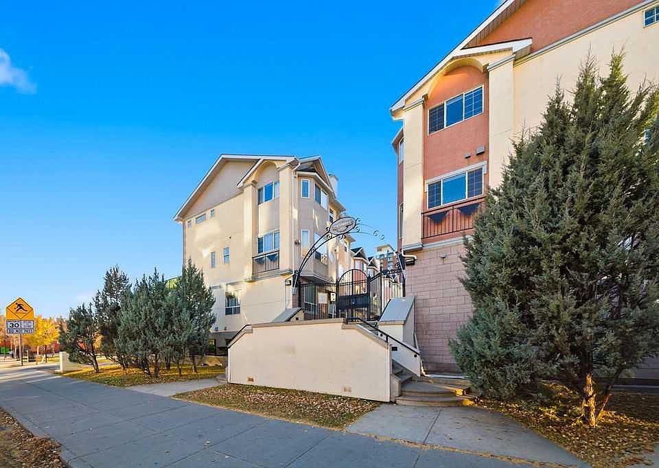 Step into spacious inner city living with this exceptional townhouse at "The Terrace," a secure, gated complex ideally situated steps from 17th ave and overlooking Thomson Family Park. As you enter, the dedicated main level entry leads you up to the well thought out central living space. The generous living room overlooks the complex's courtyard and flows seamlessly into the dining and kitchen area, which is perfectly positioned to capture views of the park. The large kitchen highlights upgraded stone countertops, stainless steel appliances, and ample cabinet space and corner pantry. Patio doors lead directly from the dining room to one of the larger private balconies in the complex offering a south facing, sun drenched space for relaxing and entertaining. The upper level boasts the always desirable double primary floor plan each featuring walk in closets and updated ensuites, perfect for roommates or families alike! Completing the upper floor is the dedicated laundry room, just down the hall. This home also highlights 2 secure parking stalls making sure that your never stuck looking for street parking! With Good Earth Cafe at your door step, green spaces off your balcony, and a dog park a block away this location is truly one of a kind and is incredibly walkable to all of the amenities of 17th ave and the downtown core. Call today for your private viewing!