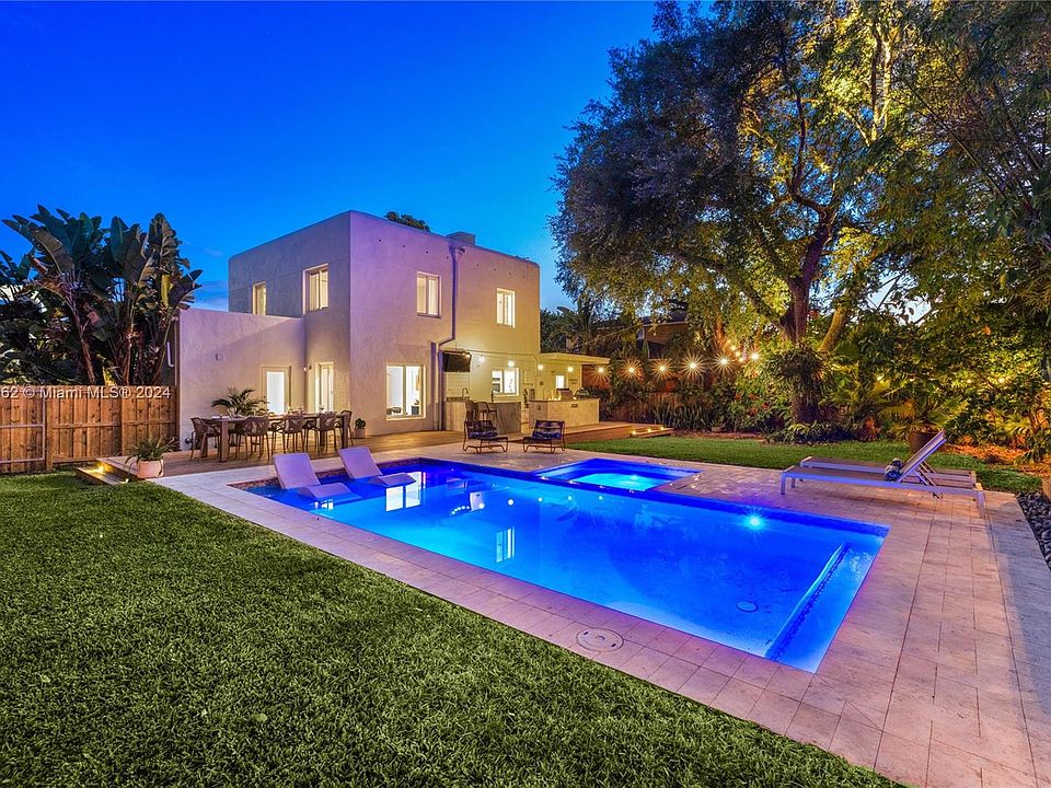 Welcome to Tropicana Retreat! Historic charm meets modern amenities in this magical massive double lot pool home paradise. Enter into open-flow living with fireplace, dining, and designer eat-in kitchen opening to a grand entertainment deck with outdoor kitchen-dining, tropical lush gardens, fruit trees and new sparkling saltwater pool, hot-tub, and sun deck—delicious entertaining awaits! Three tucked away bedrooms with bathroom, plus a downstairs flex room den with full bath (perfect office or guest nest). Fantastic features: modern kitchen and baths; wood floors; new roof; solar panels; impact windows-doors; upgraded electrical-plumbing; spacious laundry room; a one car garage and double parking. Fab Historic Grove Park location across the river from Spring Garden in the heart of it all!