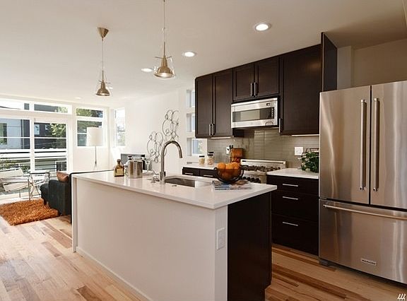 Beautiful townhome. This 2 Bedroom + Den unit is boasting almost 2000 sq. ft., and of course comes with all the great features (Hickory hardwood floors, Bertazzoni and Kitchenaid appliances, A/C when needed, Tankless H2O heater, and much more). One of the few, or only, Ballard area Townhomes with partial view of Puget Sound from your "Top of the World" private rooftop deck. One-car attached garage. Sound view Playfield is just across the street. Built Green. For more information or to set up an appointment call Duane Duval at 206-914-0150