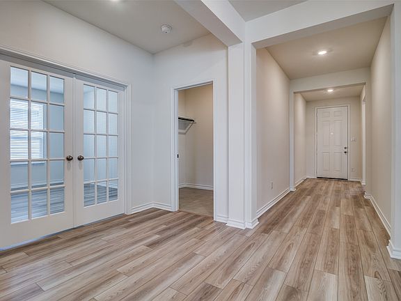 Discover the ease of one-story living in this KB Home featuring a 2-car garage and a versatile den with doors. The kitchen boasts stainless steel appliances, a breakfast bar, quartz countertops, and a decorative tile backsplash. The primary bath offers a raised vanity, quartz countertops, and a tub-shower with a tile surround. Enjoy the outdoors with a covered patio and automatic full sprinkler system. Delight in decorative touches like USB ports, 2-inch cordless blinds, and a Kwikset smartkey entry. Experience comfort and convenience in every detail of this home.