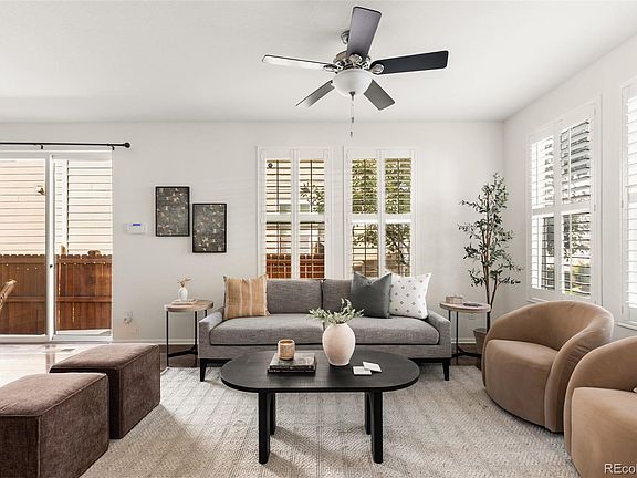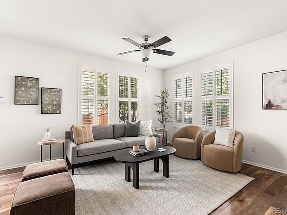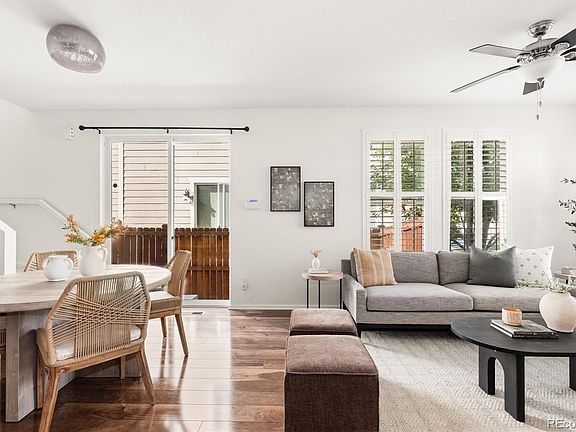 A beautifully maintained home tucked inside the Parkside Villas neighborhood, this residence combines modern updates, natural light, and a highly functional layout, offering comfort and convenience in one of Denver’s most central locations. Recently refreshed with new carpet and interior paint, the home is move-in ready. Inside, you’ll find an open floor plan with soaring ceilings, hardwood floors, and expansive windows that create a bright, airy feel. The kitchen features sleek 42” espresso cabinetry, stainless steel appliances, a stylish tile backsplash, and an island with seating that flows seamlessly into the dining and living areas, perfect for entertaining. Upstairs, the spacious primary suite includes dual closets (including a walk-in), along with an en-suite bath featuring dual sinks and a soaking tub. Two additional bedrooms and a loft with a study nook provide flexibility for guests, a home office, or hobbies. There is also a convenient laundry room on this level. The finished basement expands the living space with a large second living room, an additional bedroom with a sliding barn door, a full bathroom, and extra storage. Outside, enjoy Colorado’s four seasons in the private backyard with a patio ideal for grilling, gardening, or simply relaxing outdoors. The home is also equipped with an attached 2-car garage with high ceilings and the low-maintenance landscaping makes everyday living effortless. Located just minutes from Cherry Creek, Lowry, and the High Line Canal Trail, you’ll have easy access to shopping, dining, parks, and top schools.
