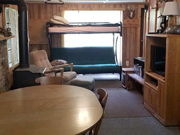 #5141. Mueller Twp. This Cute little 1 bedroom, 1 full bath cabin can sleep up to 7 people. has a nice size yard, and plenty of hardwood trees. Good location for Hunting, and fishing, with McDonald Lake and Gulliver lake just down the Road. Snowmobiling also can go any where. a must see, made of Cinder Blocks, and a wood stove can keep you toasting in the winter time. Plenty of CFA land on the back. Everything goes with cabin, except personal items