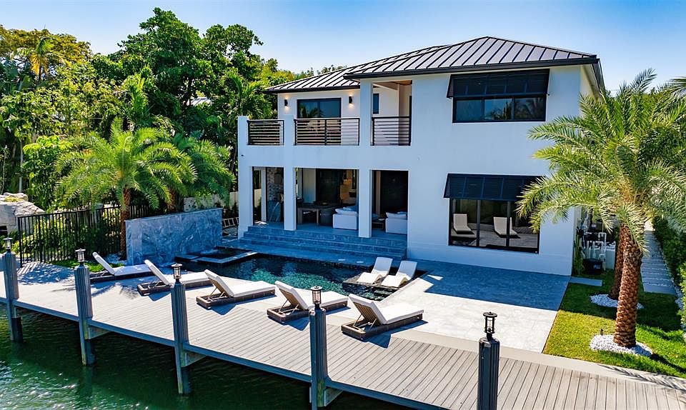 Turn-Key RH Styled & Furnished New Construction Estate sited on 65' of deepwater in Rio Vista. This 5 bed/5.5 bath gated residence has 5,122 total sqft of seamless indoor-outdoor living. Chefs kitchen fit with 6 burner Viking gas stove/griddle, Viking double refrigerator/freezer, 2 Viking dishwashers, Bosch built-in coffee/espresso maker, European cabinetry, & 24" Thermador wine column & ice maker. Smart-house tech: electronic shades, double-sided linear electric fireplace, & programmable hot steam shower! Enhanced closet design and expansive covered summer kitchen & loggia complete with gas grill, refrigeration, & impressive electric phantom screens. A heated salt-water pool/spa with cascading waterfall features, set within marble decking, leads to the new composite dock & raised seawall.