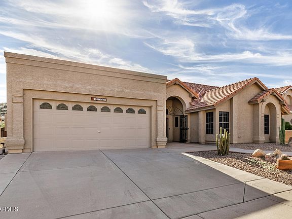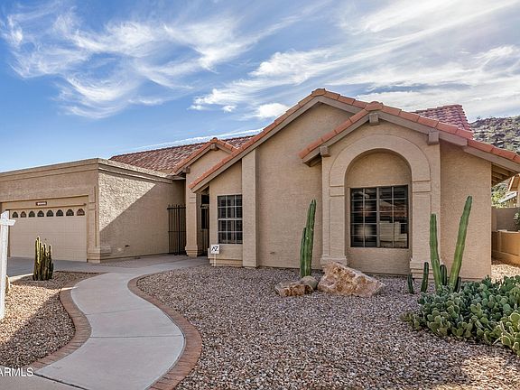 Nice spacious single family home backing to the Mountain Preserve allows for gorgeous views and extra privacy. 3 large bedrooms plus den/office & 2 full bathrooms. Gorgeous neutral 10x 10 tile throughout, freshly painted on the interior of the home, oak kitchen cabinets with granite counter tops, plantation shutters in bedrooms, remodeled bathrooms, vaulted ceilings, real wood burning fireplace, breakfast bar, & lots of recessed lighting. This home is bright and cheerful. Within close proximity to shopping and freeways. Mountain Park Ranch has lots of amenities for its residents. Pools, spa, pickle and tennis courts plus walking /cycling paths. All of this in the much-coveted Ahwatukee neighborhood. Award winning school district is great for families and for re-sale value.
