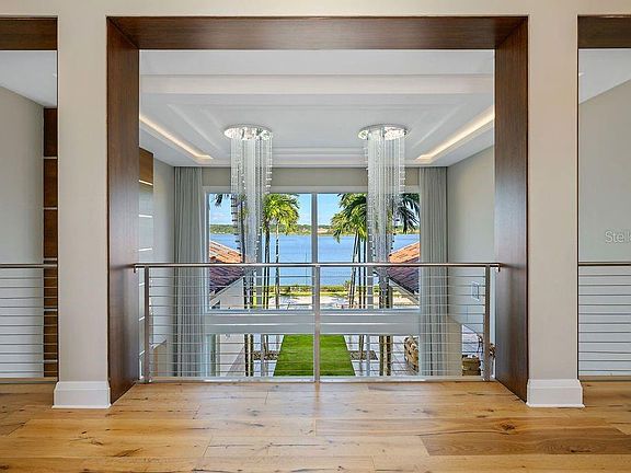 Spacious 3-story gated lakefront home located in the greater Windermere area has every state-of-the-art amenity imaginable. Award winner of 2018 Parade of Homes and CTA Consumer Electronics Association. The property is controlled and automated by a Control4 automation system, simplifying your lifestyle with a simple one-button system that controls all audio/video systems, security, camera, lighting and access controls. Enjoy lake views and magical sunsets through the two-story glass on every level. The open and bright home is generously proportioned at approximately 5,916 square feet and showcases 4 en-suite guest rooms, 3 and 1/2 baths, bleached oak floors, top-of-the-line Wolf/Sub-Zero appliances in the chef's kitchen and 3' Quartzite duel waterfall islands with bar seating, perfect for entertaining. The sleek master suite features a built-in screen with a projector and a two-story walk-in closet. Master bath features dual Toto water closets, a Toto tub, heated floors, skylights, and steam shower with lake views. The private backyard features a pool with a Baja shelf/spa area, a built-in pizza oven, outfitted with rear projection movies screen, two AC units that give the flexibility to enjoy the outdoor area all year round. This exquisite home is a true testament to the marriage of functionality and design and is not to be missed.