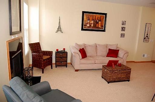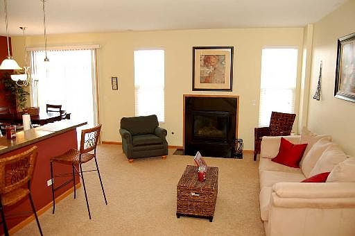 THIS UNIT SHOWS LIKE A MODEL & THE SELLERS WILL LEAVE LOFT FURNITURE (MINUS TV) + QUEEN BED IN GUEST ROOM, subject to offer! Kitchen offers maple cabinets, stainless appls,& snack bar! Dining room features sliding door to concrete patio. All appl. stay! Huge 21x16 loft with cathedral ceiling perfect for entertaining!! Large master br with walk in closet. Close to walking path, park, Metra, shopping and schools!!!