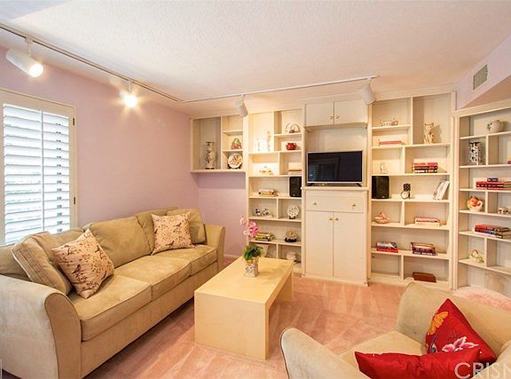 Rarely offered one level condo in desirable Oakpointe Complex. Unit is 1877 square feet. This is the largest single level condo in complex! Unit is south facing overlooking trees, mountains and greenbelts. A double door entry opens to beautiful hardwood floors in the entry, kitchen and hallway. The living room features a stunning beveled mirrored fireplace, wet bar and plantation shutters. The den, situated off living room, has built-in shelving and walk-in closet. This could easily be converted to 3rd bedroom. An open kitchen has breakfast area, new stove, microwave and dishwasher, custom cabinetry and recessed lighting. Dual master suites each have their own patio and bath. One of the suites includes a spacious bathroom with double sinks and oval tub/shower combo. The laundry room boasts a side by side washer and dryer. There is also a hot-rock sauna for relaxing after a long day. The covered patio is perfect for morning coffee or barbecuing, and the magnificent park-like grounds include many amenities including pool, spa and tennis courts. All of this, conveniently located minutes from the 405 and 101 freeways.