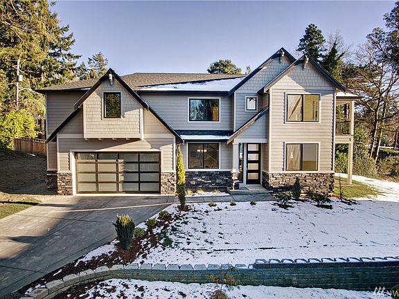Unique & provocative new construction home offering a sophisticated rare combination of size, location, Puget Sound views & inspired distinctive NW architecture. 4 bedrooms including a jr master on main. Impeccable open kitchen with extended island and oversized pantry. Dining room, living room open to water view, massive bonus room, awe-inspiring master retreat with 5 piece bath and walk in custom closet. Office, extensive covered outdoor living space, blinds, AC, large lot and a 3 car garage.