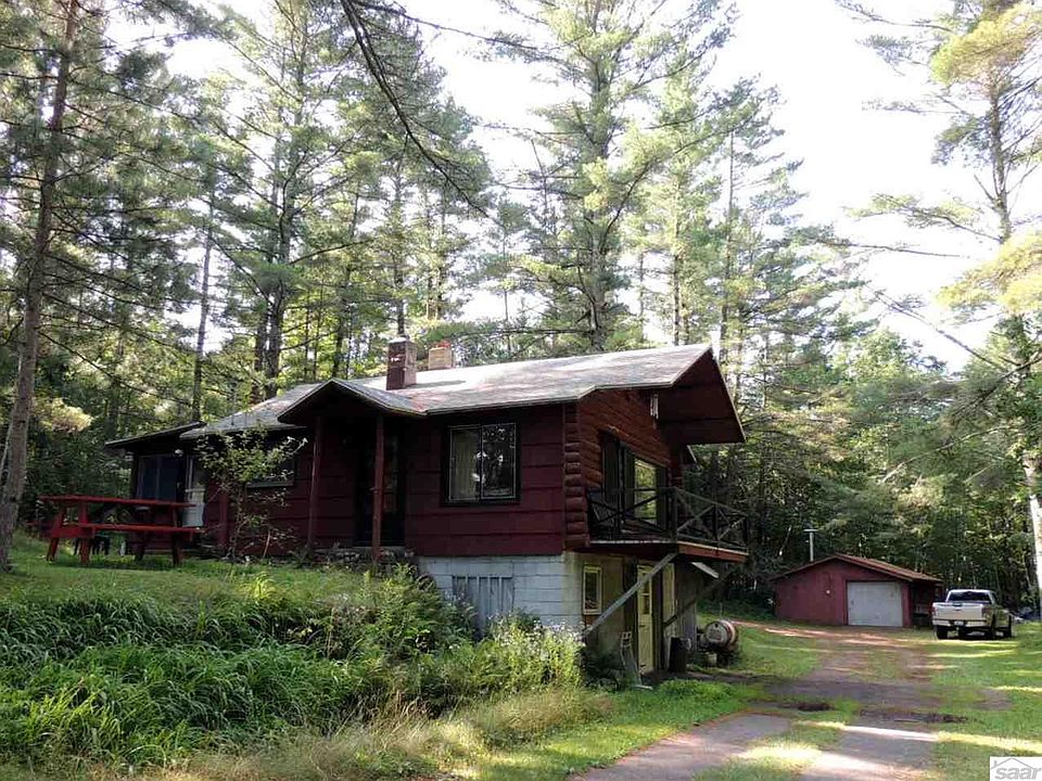 Gorgeous 5.3-acre lot with many grand, towering white pines. Original log cabin was built in 1949 and now is the living room. Kitchen, bath and bedrooms were added on in the 1960's. Elderly couple lived here year round for the past 26 years. Needs TLC -- worth the effort! Great location on paved roads 3 miles from Cable.
