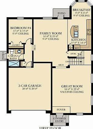 Step not only through the covered entryway of a beautiful 4-bedroom, 2-story home-- but also into Lennar's Everything's Included® Homes experience. As you walk inside you can feel safe knowing that Home Automation with Nexia(tm) Home Intelligence, a wireless home electronic system, is installed to help you operate devices such as lights, thermostat, and camera. You'll find both Ceramic Tile and Plush Carpet in various rooms, as you step through the Foyer and into the Great Room. From the Living Room arch you'll enter the Family Room that opens up to the Breakfast area and Kitchen that features Wood Cabinets, Mica Countertops, and Stainless Steel Appliances. The Family Room that also has an entryway to the outdoor Patio also has an arch that leads to a bedroom, a Cabana Bathroom with Patio door, a Laundry area with Washer and Dryer, and a doorway to the 2-car garage. The 2nd floor features a Master Suite and 2 Bedrooms that have access to a bathroom with dual vanity and bathtub. The Master Suite includes a walk-in closet, master bath with dual vanity sinks, marble countertops, a glass enclosed shower and a Roman tub.