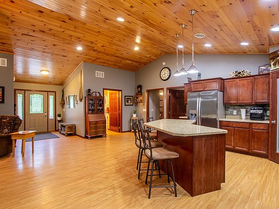 When you want privacy, acreage to roam & would like to be attached to public land, this is your new place!! Enjoy comfort & space with this exceptional 4-bed, 2-bath home. Designed for both relaxed living & expansive activities, this newer home boasts an open-concept layout that blends style & functionality. From the stunning pine vaulted ceilings, generous living areas, & enjoy the ample closet space in each of the large, airy rooms. The primary suite provides a tranquil retreat, complete with all the space you need to unwind. For those who value convenience & extra storage, the property includes an oversized dbl gar, as well as a 28x40 shop w its own gas heat. Set on 38 picturesque wooded acres, this home is surrounded by trails for hiking and exploring,& features two well-placed deer stands for avid hunters. Plus, it borders 120 acres of public land, offering opportunities for outdoor adventures. This property truly provides room to roam & a haven for both relaxation & recreation.