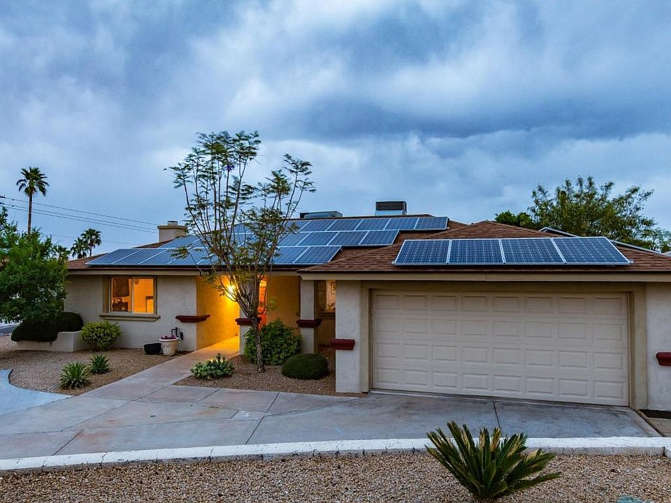 Are you ready for your own rooftop 360 mountain and city lights view from your own deck? Spiral staircase supplies your ''perch up top'' to relax and weather watch! Seller has installed a $50K solar package to keep your utility costs their lowest. Fantastic, open living floor plan with single story 4 bedroom 2 bath home! Gorgeous updated kitchen with granite counters and travertine back splash. New tile throughout. Large french doors open up to the private backyard with sparkling pool. Quiet cul-de-sac community with little traffic. Quick access to freeways and the perfect location to head to Downtown Phoenix, Scottsdale, Desert Ridge, Paradise Valley Mall, and miles of hiking/biking trails within minutes. Come and see it before its gone!