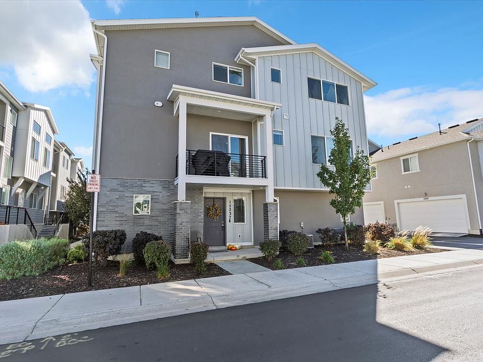 This well-kept, spacious 3-story townhouse combines style, comfort, and convenience. It includes 3 bedrooms, 3 bathrooms, an office, and a flex room ideal for a gym, playroom, or media room. The kitchen and living areas are perfect for hosting gatherings. Key features include a 2-car garage, plenty of storage, and breathtaking mountain views. Located in a family-friendly area, you're just minutes away from shopping, dining, schools, and freeway access. The community offers an elementary and middle school, walking and biking trails, and a city park with pickleball courts, a dog park, a skate park, and bike pump trails. Enjoy easy access to I-15, Silicon Slopes, The Point, and the Jordan Parkway trail system. This move-in ready home is a wonderful opportunity! All information is considered accurate but buyer is responsible for verifying all information.