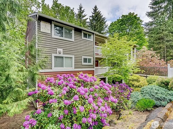 Enjoy peace of mind knowing you’re within the Newport High School boundary—an area celebrated for excellent education and community pride. Tucked among the trees, this bright and private corner home feels like your own peaceful retreat. The cheerful kitchen features stainless steel appliances, slab granite counters, and a breakfast bar that opens to a sunny dining area—perfect for casual meals or morning coffee. The living room, warmed by a wood-burning fireplace, extends to a balcony surrounded by nature, creating a calm, treehouse-like setting. Spacious bedrooms, a large laundry room with extra storage. Ideally located just minutes from I-90, with parks, trails, and shopping nearby. No rental cap—an inviting home and a smart investment!