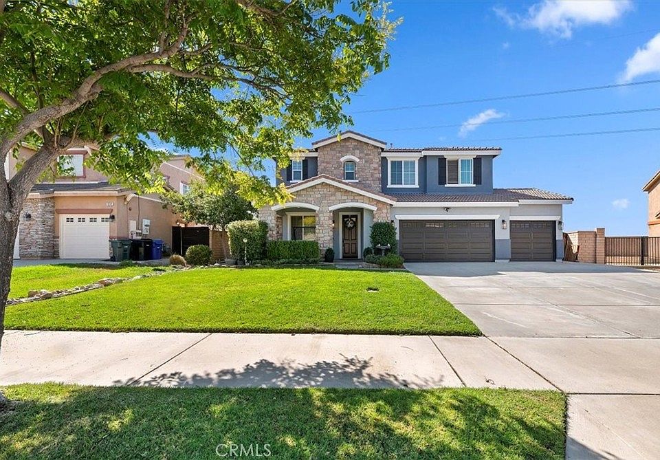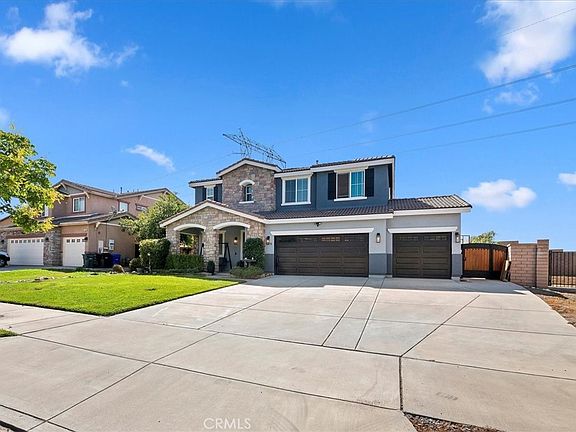 This gorgeous two story home features 4 bedrooms, 2.5 bathrooms plus tons of upgrades and located in the Etiwanda School District. It has bright open floor plan designed for modern living and entertaining. It boasts a spacious kitchen with ZLINE 48 inch dual stove and built in 6 bottle wine fridge. Kitchen and family room is pre-wired for 5:1 surround sound. Built in entertainment center in the family room. Custom buffet with hutch in the dining area. Porcelain tile flooring and new carpeting. Master suite with a jacuzzi. Bonus room converted into two multi-use spaces. Stunning and spacious backyard with extra large 15x30 salt water pool with variable-speed pump and Pentair remote programming. Three car garage with hexagon LED lights, epoxy flooring plus 3:1 gym equipment included. Close to I-15 and 210 freeways, minutes away from Victoria Gardens, parks and shopping centers. This North Fontana home combines comfort, luxury and functionality. Perfect for families and those who love to entertain.