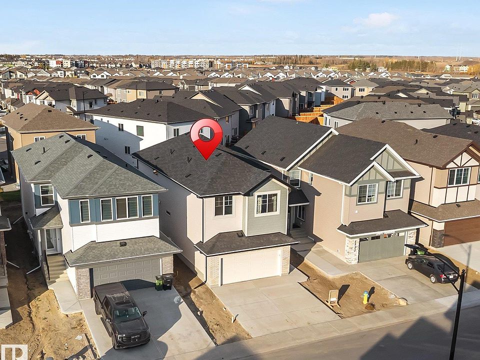 **SOUTH EDMONTON** ASTER COMMUNITY** SIDE ENTRY** OPEN TO BELOW** Step inside to discover an open and inviting main floor where natural light fills the living area, creating a warm and welcoming atmosphere. The spacious kitchen is thoughtfully designed with modern finishes, abundant cabinetry, and a seamless flow to the dining area—perfect for family gatherings or hosting guests. A cozy living room with a feature fireplace offers the ideal space to relax, while a main floor bedroom and office provide flexibility for guests or working from home. Upstairs, the primary suite feels like a private retreat, featuring a walk-in closet and a luxurious ensuite with elegant fixtures and finishes. Additional bedrooms are generously sized, offering comfort and privacy for everyone. The family room upstairs adds a wonderful touch for movie nights or quiet evenings. With a bright laundry space and a functional layout throughout, this home combines comfort, elegance, and practicality.