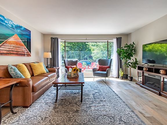 Modern furnishingsTall oversized windowsBeautiful garden viewPlenty of natural lightHd television