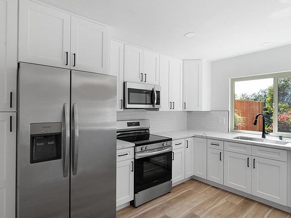 Stunningly remodeled 3-bedroom, 3-bathroom home in the private, quiet Bay Ridge community—just steps from the heart of South Park. This designer-upgraded home offers the style and space of a single-family home with only one shared wall and a flexible, highly functional floor plan. Step inside to discover an open-concept layout with soaring vaulted ceilings, premium wide-plank flooring, and an abundance of natural light. The fully renovated kitchen is a true centerpiece, featuring custom cabinetry, quartz countertops, stainless steel appliances, and a large window—perfect for entertaining or casual everyday living. The main level includes a spacious bedroom and a sleek, modern full bath—ideal for guests or multigenerational living. Upstairs, you’ll find two generously sized ensuite bedrooms with beautifully finished bathrooms, offering comfort and privacy for everyone. Enjoy indoor-outdoor living in the private backyard retreat, complete with a large patio, tasteful landscaping, and plenty of space to relax or host friends. Additional features include a one-car attached garage, a private driveway with two parking spaces, and ample storage throughout. Located in a peaceful, tucked-away enclave, yet just minutes from the shops, restaurants, and culture of South Park, North Park, and downtown. The Bay Ridge community offers a pool, playground, and well-maintained greenbelts—all for a low HOA of just $270/month. Turnkey, stylish, and thoughtfully updated—this is San Diego living with neighborhood charm and urban convenience.