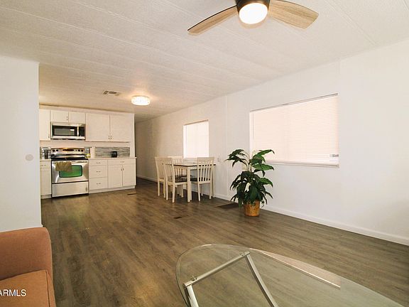 Here is a fantastic starter home with two bedrooms and one bath with a bonus room that could serve as an additional bedroom. The home has wood plank laminate flooring and all lighting and ceiling fans have been updated. The large lot provides room for additional storage for all the toys. Commuting is easy with access to US60. This home is located close to shopping, restaurants, hiking and the lakes.