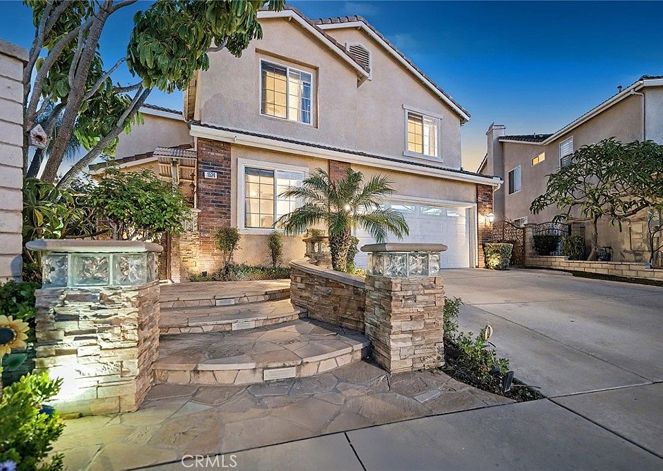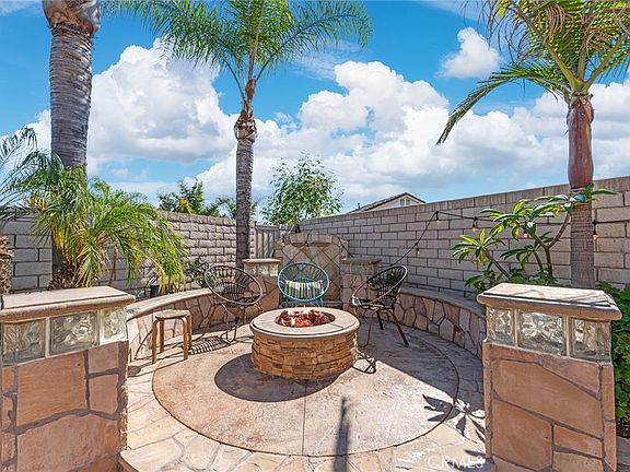 RARE FIND – 6 Bedrooms & 4 Baths. Lovely Home in a Lovely Neighborhood. Welcome to your private retreat! Enter through European-style gates into a charming courtyard, flagstone walkway, and lush landscaping. Inside, you’ll find soaring ceilings, sun-filled rooms with views of the courtyard, and a spacious open floor plan designed for modern living. Enter a formal dining room with French doors leading to the patio featuring built-in screen doors for indoor-outdoor enjoyment. Continue into a chef’s kitchen with granite counters. The kitchen opens to a family room full of windows with a gas fireplace adjacent to a built-in entertainment niche for extra large television —perfect for gatherings. Ideal for multi-generational living, this home features 2 main floor bedrooms, one with a private entrance that’s perfect as a bedroom or a home-based office. Upstairs, you’ll find 2 en-suites bedrooms, including a luxurious primary retreat with two huge walk-in closets and city-light and mountain views. Two additional bedrooms and baths totaling 3 full baths upstairs. Step outside to an entertainer’s dream backyard with covered patios, newer tastefully done green turf, large custom stacked-stone BBQ island & wet bar that can easily seat 8, built-up rock gas fire pit, and a hidden secret garden with grapevines and loquat trees and storage sheds. The property is dreamy at sunset, enhanced by outdoor lights and a lit fire pit. Extras include: dual A/C system, whole-house fan, leased solar, surround sound wiring, security system, fiber-optic internet and an expansive 8,799 square-foot lot—the largest in the community!
