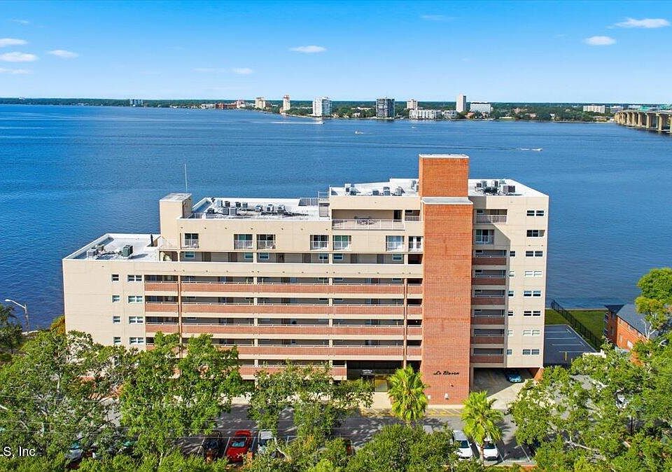 Stunning completely remodeled unit showcasing the direct waterfront views of the St. Johns River. Open floor plan with gourmet kitchen and bar seating and solid surface counter tops. Wood flooring throughout, custom blinds and one of the few exterior storage units. Also, included is a prime covered parking space with a value exceeding $10,000.The complex offers residents the use of the solarium/meeting room atop the building and roof top patio for maximum enjoyment.
