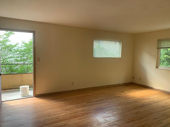 Incredibly spacious and light-filled two bedroom unit for rent! 800 square feet with the nicest, gleaming, original hardwood floors you may ever see! Warm oak color in the sunbeams. Freshly repainted kitchen cabinets. At the rear of the top floor looking out onto greenery, not onto a street or another building--view of trees out back vs looking at more walls! Small, intimate, family-owned / local-owned building, walking distance to everything Ballard has to offer but still off the main thoroughfare on a quiet, tree-lined street. Breweries and restaurants, grocery stores, parks, the library, bus lines! One to two parking spots available for an additional fee.