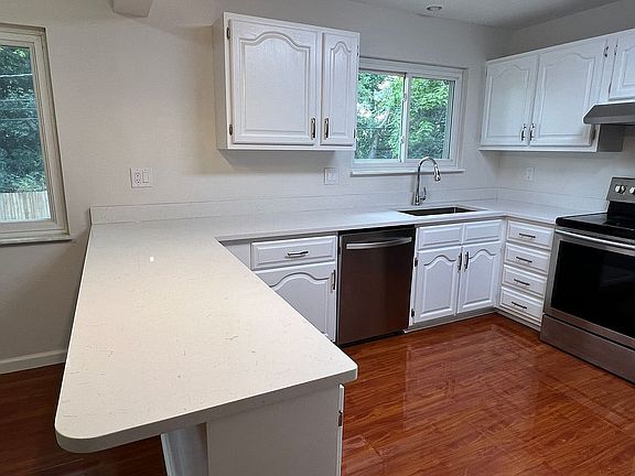 New quartz countertopRefreshed kitchenFinished lower levelBonus roomsNew garage doorBrand-new sidingSix-panel doors
